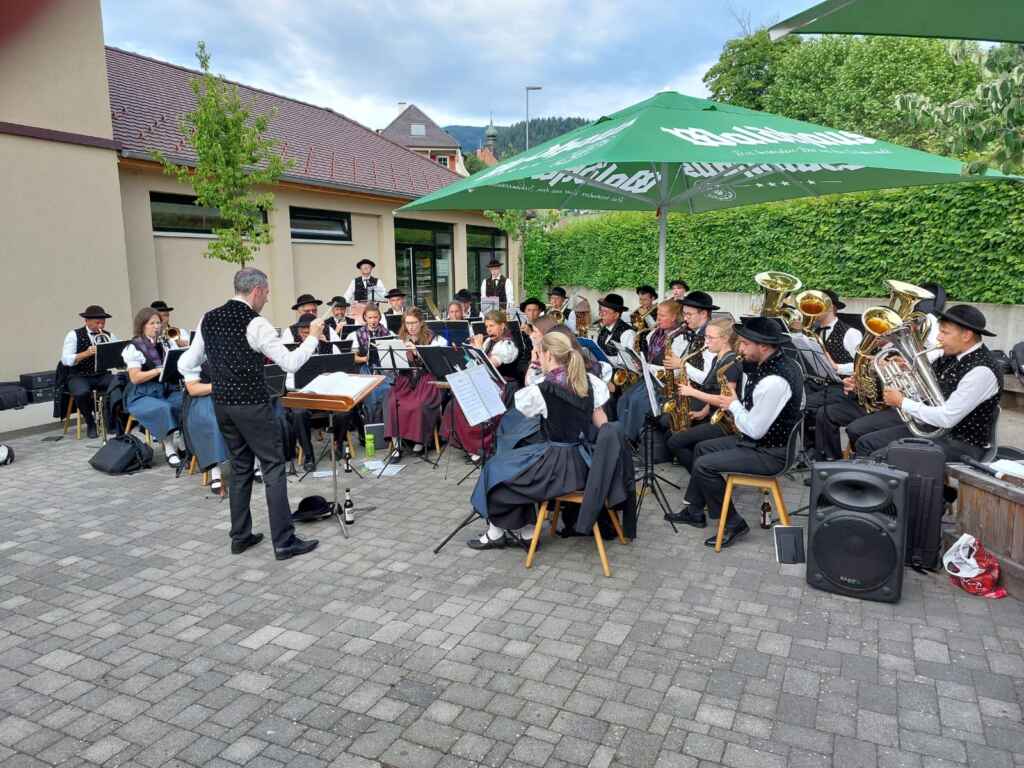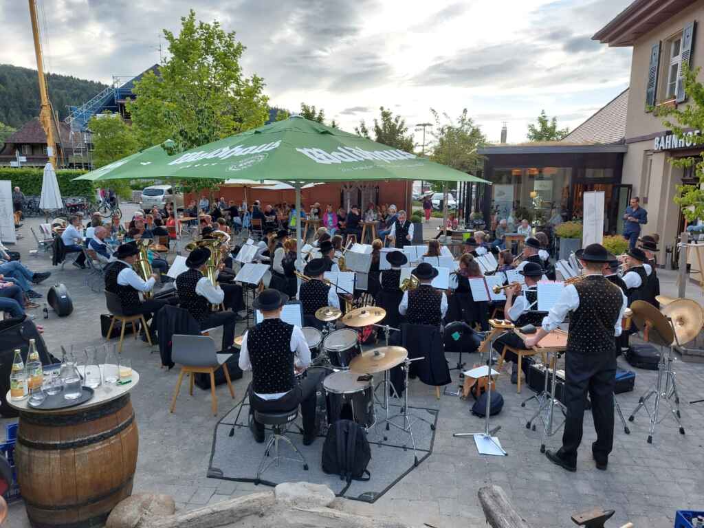 Nicht nur wir Musiker und Musikerinnen der Trachtenkappelle, sondern das zahlreich anwesende Publikum aus Nah und Fern hatten Freude an unserem Unterhaltungskonzert bei angenehmer Temperatur, auf der schönen Terasse des Bahnhof Münstertal. Mit einem abwechslungsreichen Programm unterhielten wir die Gäste, was mit großem Applaus belohnt wurde. Und auch die Zugabe “Böhmischer Traum”, mittlerweile schon ein Klassiker der volkstümlichen Musik, durfte nicht fehlen.